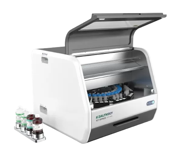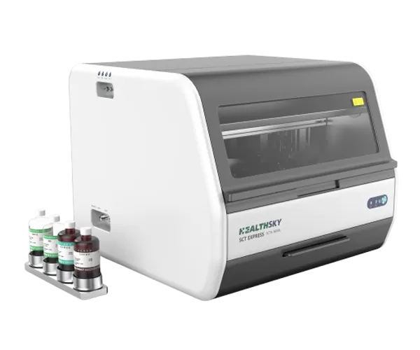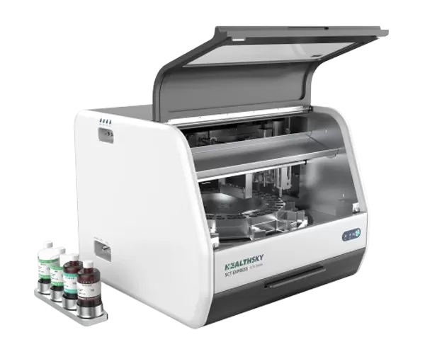 Die HealthSky-SCTE-3600A ist eine voll automatische flüssigkeits basierte Zytologie-Workstation, die zur Verarbeitung und Färbung von Proben in der Zytologie verwendet wird. Das SCTE-3600A erzeugt ein schicht ige Objektträger mit sauberem Hintergrund, optimaler Zell ablagerung und besser gepflegter zellulärer Morphologie. Die hergestellten Objektträger können für zyto logische Kategorien verwendet werden, wie vom Bethesda-System definiert.